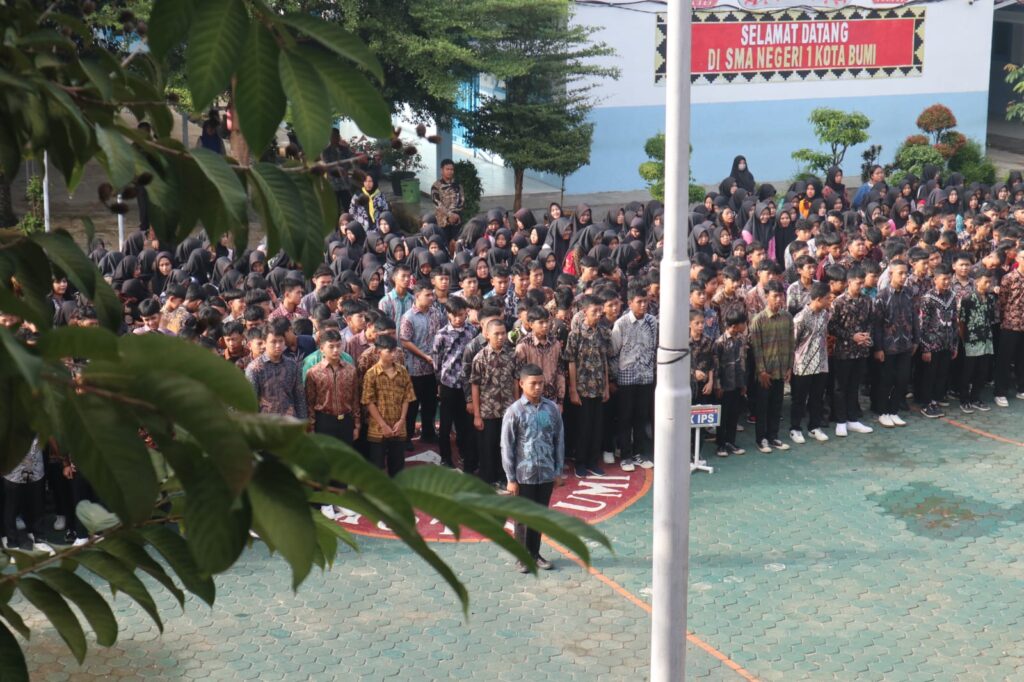 Upacara dilangsungkan di lapangan SMA Negeri 1 Kotabumi, dihadiri oleh seluruh siswa-siswi, dewan guru, serta staf Tata Usaha (TU) SMA Negeri 1 Kotabumi. Seluruh peserta upacara mengenakan atasan batik dengan bawahan berwarna hitam, menciptakan suasana yang kental dengan nuansa kebangsaan dan budaya.