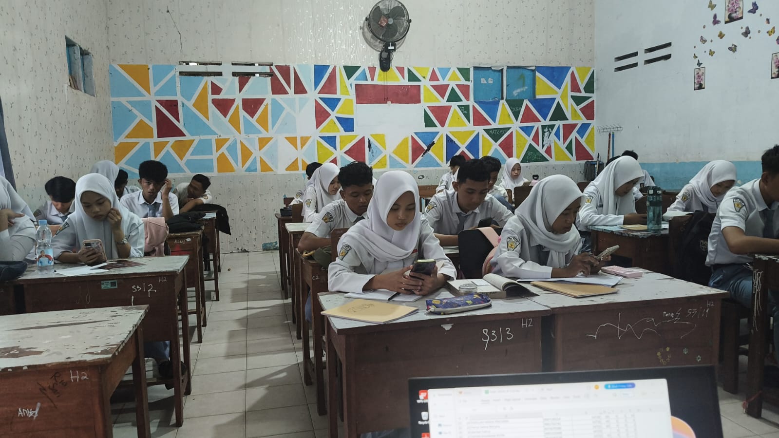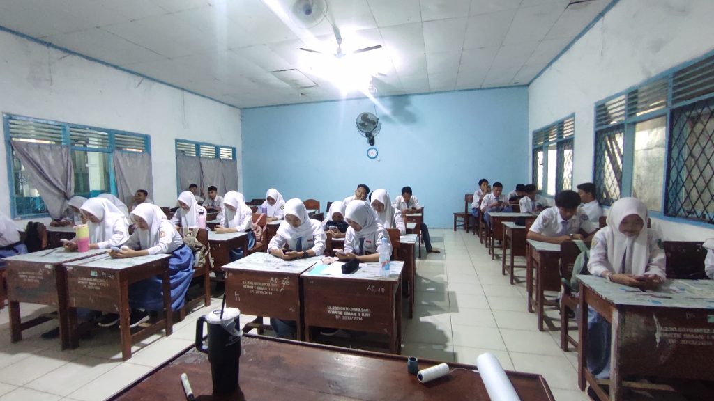 Pelaksanaan simulasi dimulai pada pagi hari, dengan para siswa mengerjakan soal-soal yang telah disediakan melalui aplikasi JIHAN secara mandiri namun terstruktur. Setiap kelas berada di bawah pengawasan langsung wali kelas, yang memastikan proses berjalan tertib, disiplin, dan sesuai prosedur.
