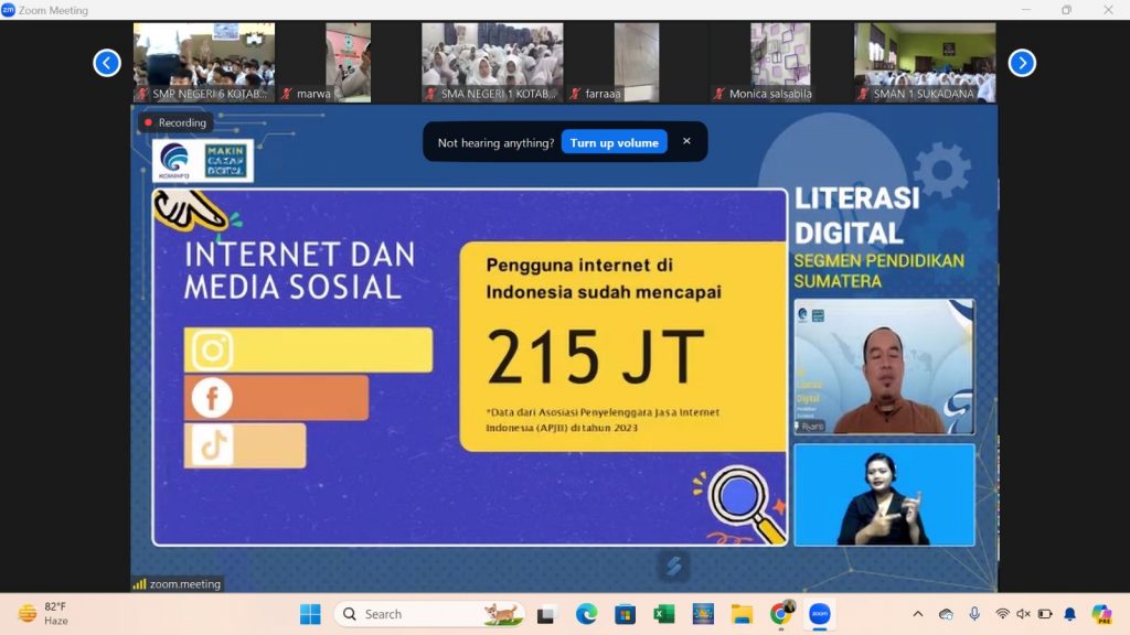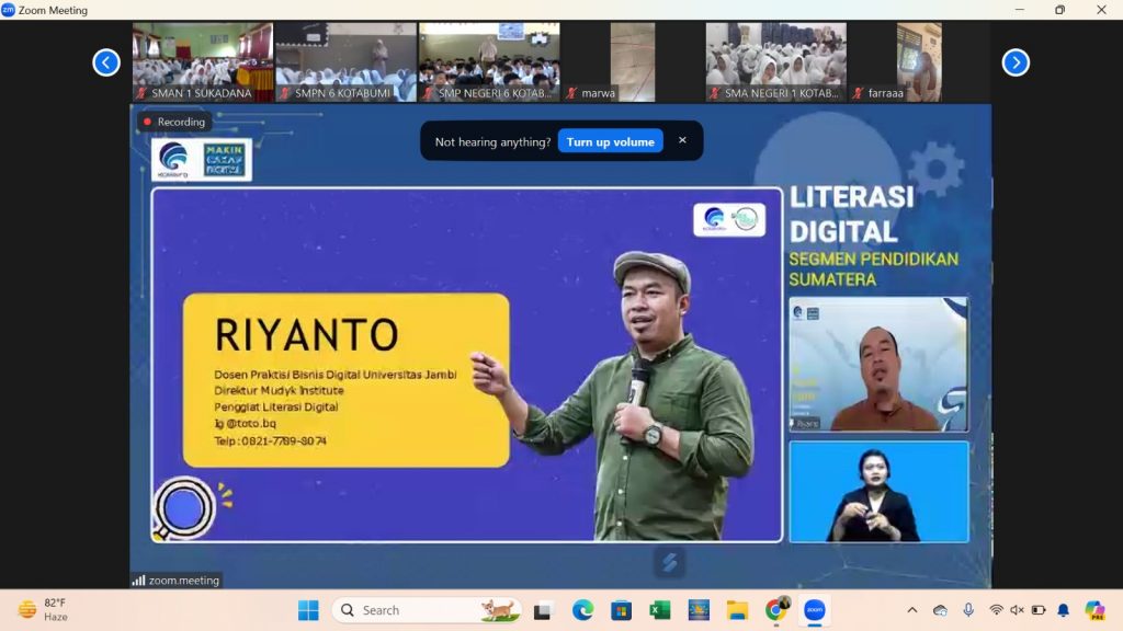 SMA Negeri 1 Kotabumi terus menunjukkan komitmen dalam meningkatkan literasi digital siswa-siswinya dengan mengikuti Program Literasi Digital Kominfo 2024 untuk wilayah Provinsi Lampung. Kegiatan ini dilaksanakan pada Senin, 26 Agustus 2024, melalui platform Zoom Meeting dengan tema “Pahami Hak Cipta Konten Digital.”