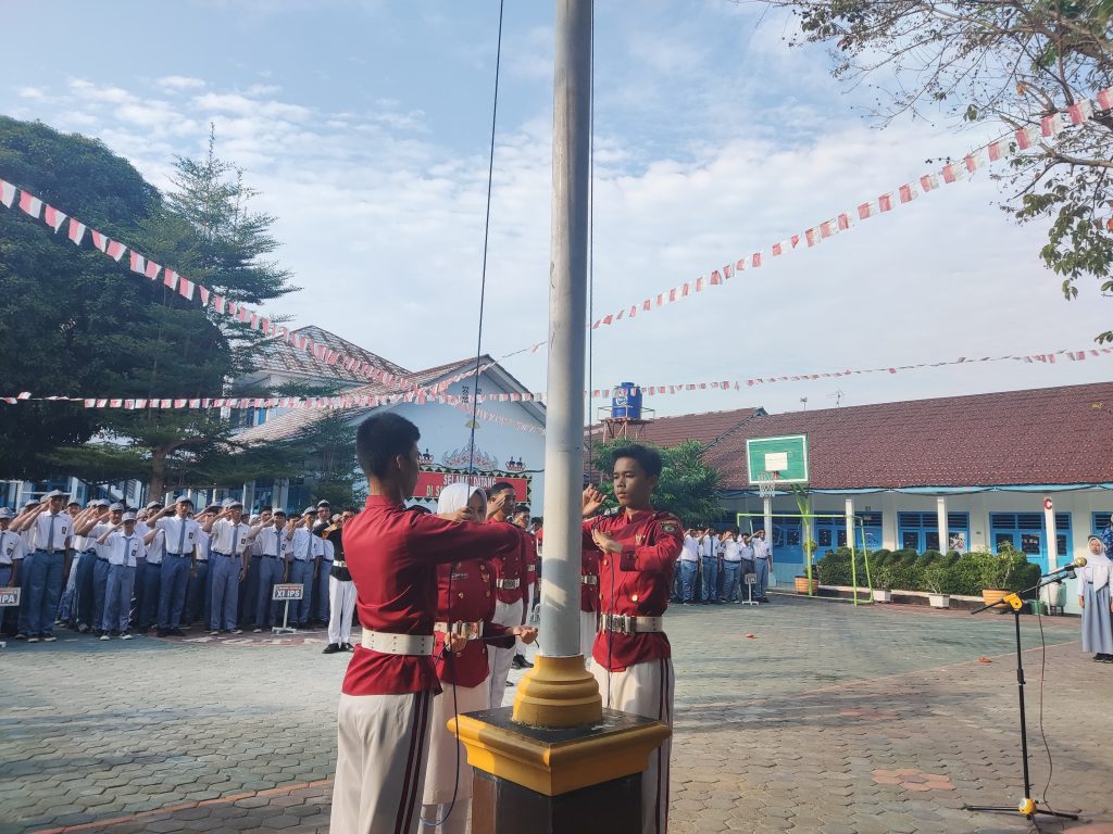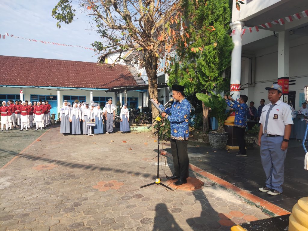 Upacara bendera dipimpin oleh Wakil Kepala Sekolah Bidang Kurikulum, Drs. Sariwan Prayogo yang bertugas sebagai pembina upacara hari ini. Beliau menyampaikan pesan tentang pentingnya menjaga persatuan dan semangat juang para pahlawan yang telah memperjuangkan kemerdekaan. Dengan penuh hikmat, seluruh peserta upacara mengikuti rangkaian acara dari awal hingga akhir, menjadikan momen ini sebagai bentuk penghormatan dan refleksi terhadap makna kemerdekaan.
