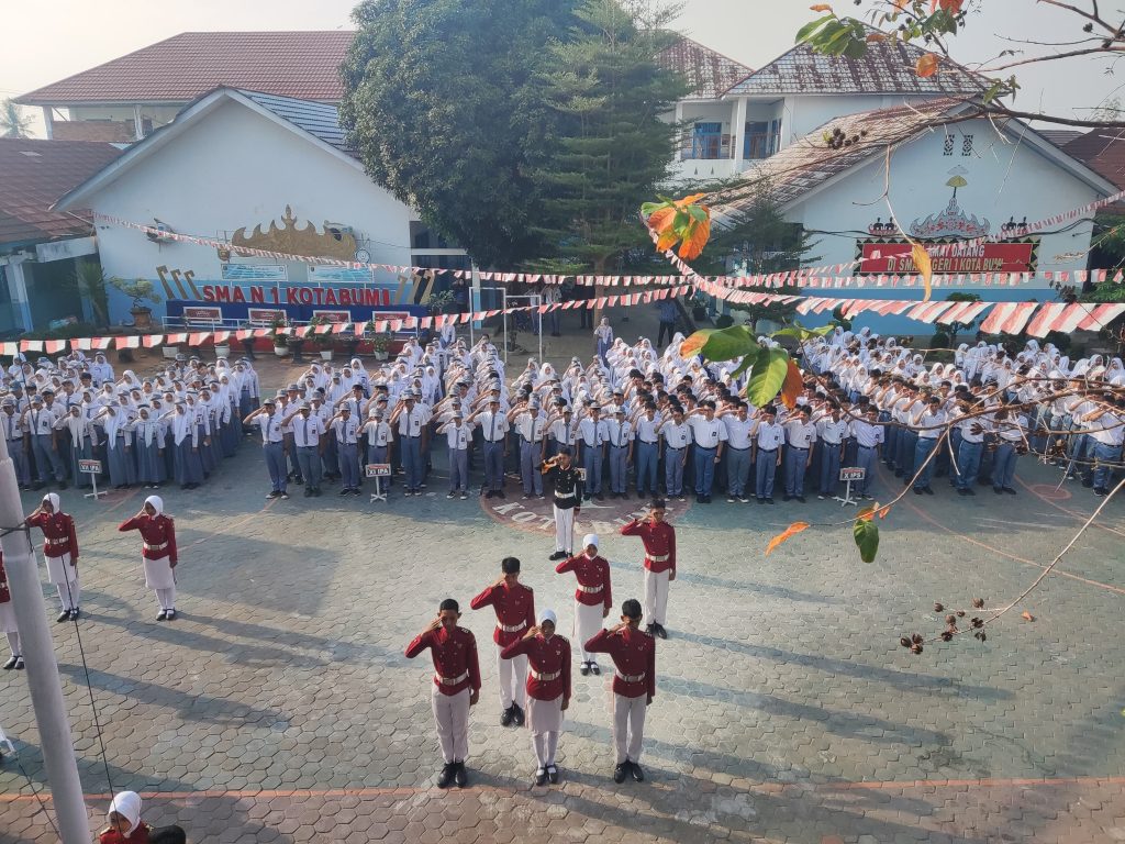 Dalam rangka memperingati Hari Ulang Tahun ke-79 Republik Indonesia, SMA Negeri 1 Kotabumi menggelar upacara bendera dengan khidmat di halaman sekolah pada hari ini. Seluruh dewan guru, staf, dan siswa-siswi turut berpartisipasi dalam kegiatan ini, menunjukkan semangat nasionalisme dan rasa cinta tanah air.